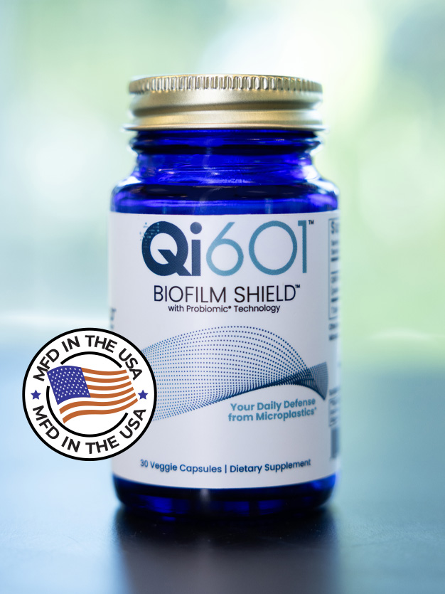 Rooted in Defense Advanced Research Projects Agency (DARPA) -funded research on microbial barriers against toxins, Qi601™ translates military-grade innovation into everyday protection. One easy-to-swallow capsule daily activates the shield, offering a practical defense in the Plasticene era.
